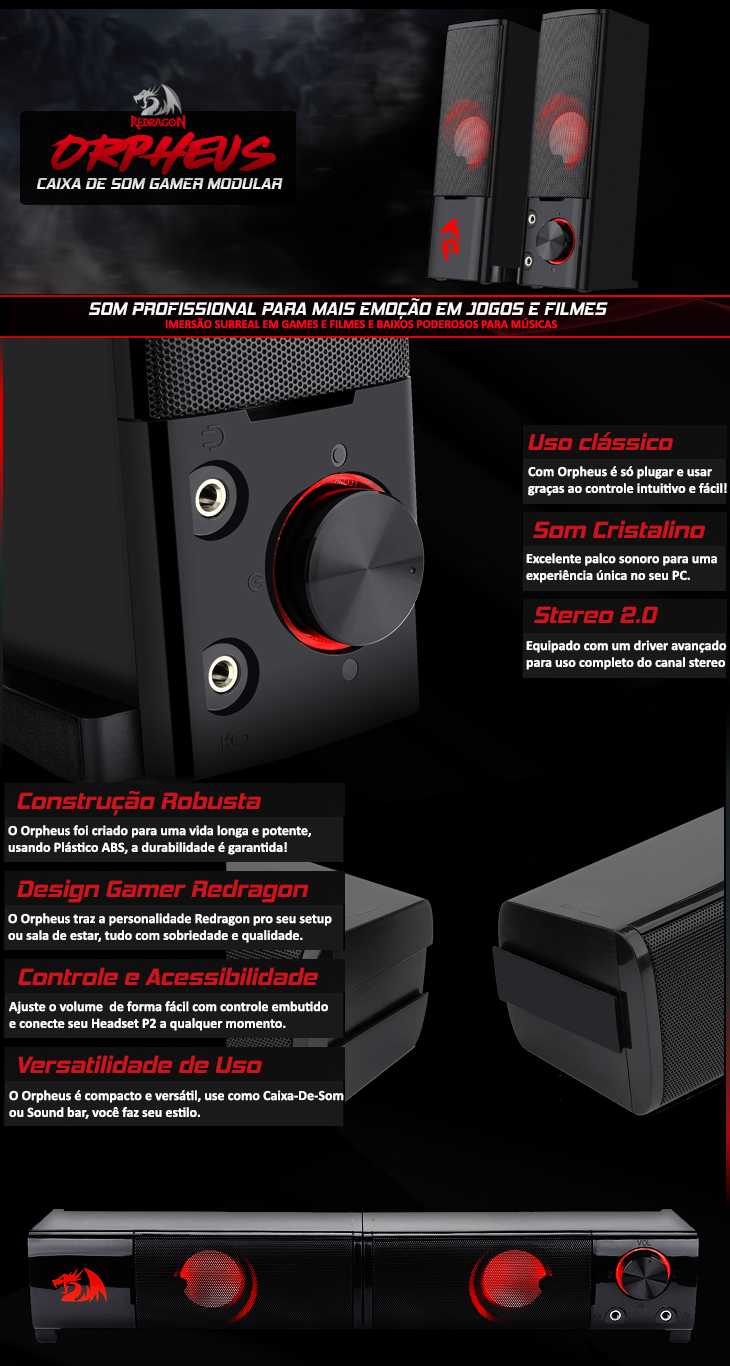 Caixa de Som Gamer Redragon Orpheus GS550 2.0 LED