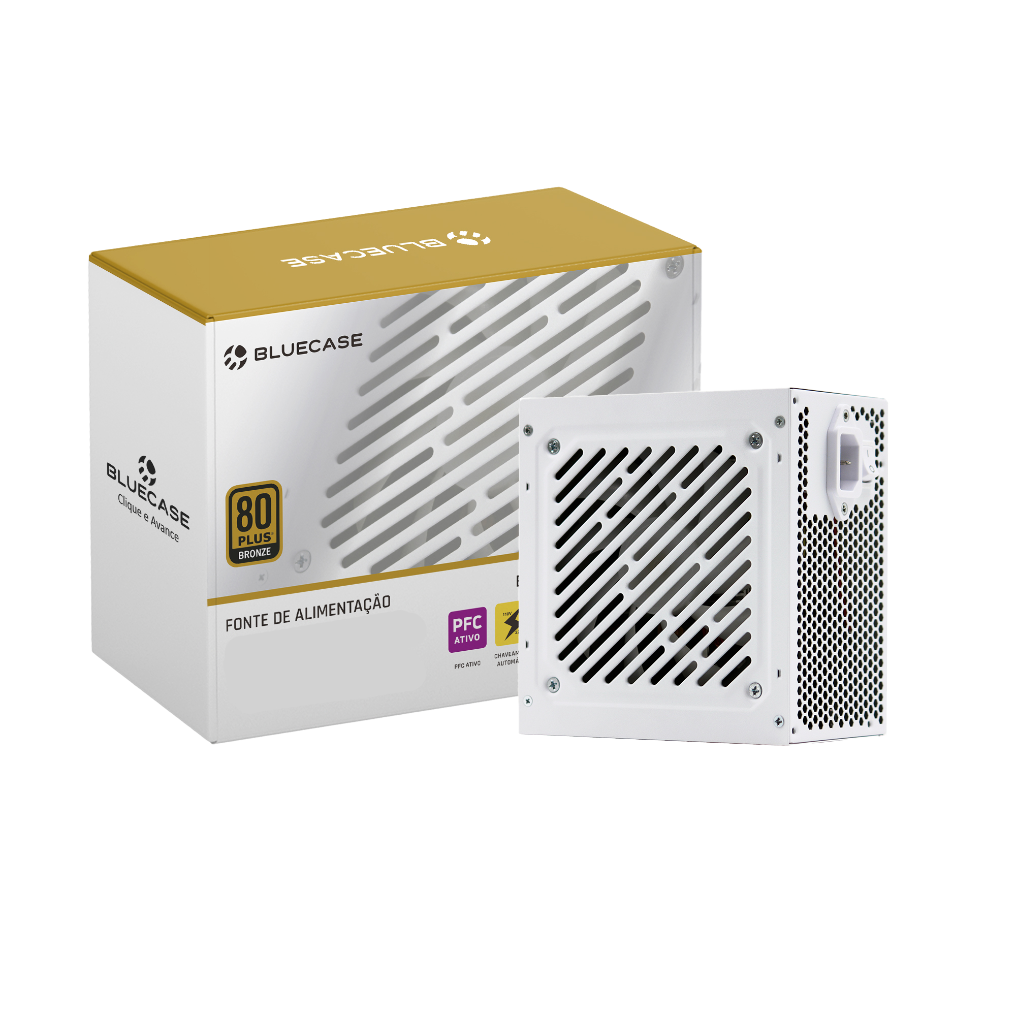 Fonte Bluecase 600W 80 Plus Bronze White – Potência real com visual clean