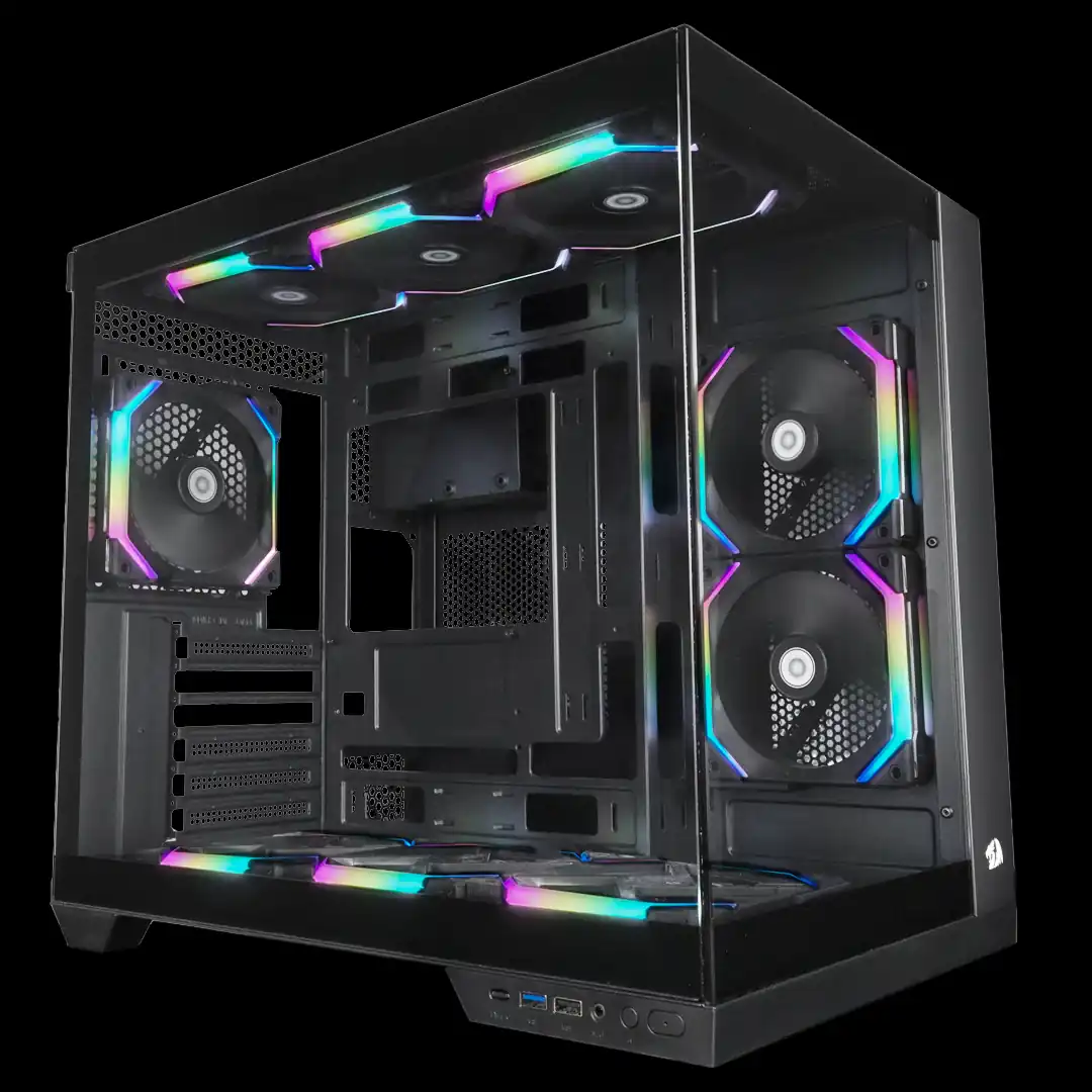 O Redragon Wideload Pro é feito pra quem quer montar um setup impactante, organizado e pronto pra upgrades pesados. Com design estilo aquário minimalista, ele valoriza os componentes e entrega um visual limpo que combina com qualquer build gamer ou workstation moderna.
