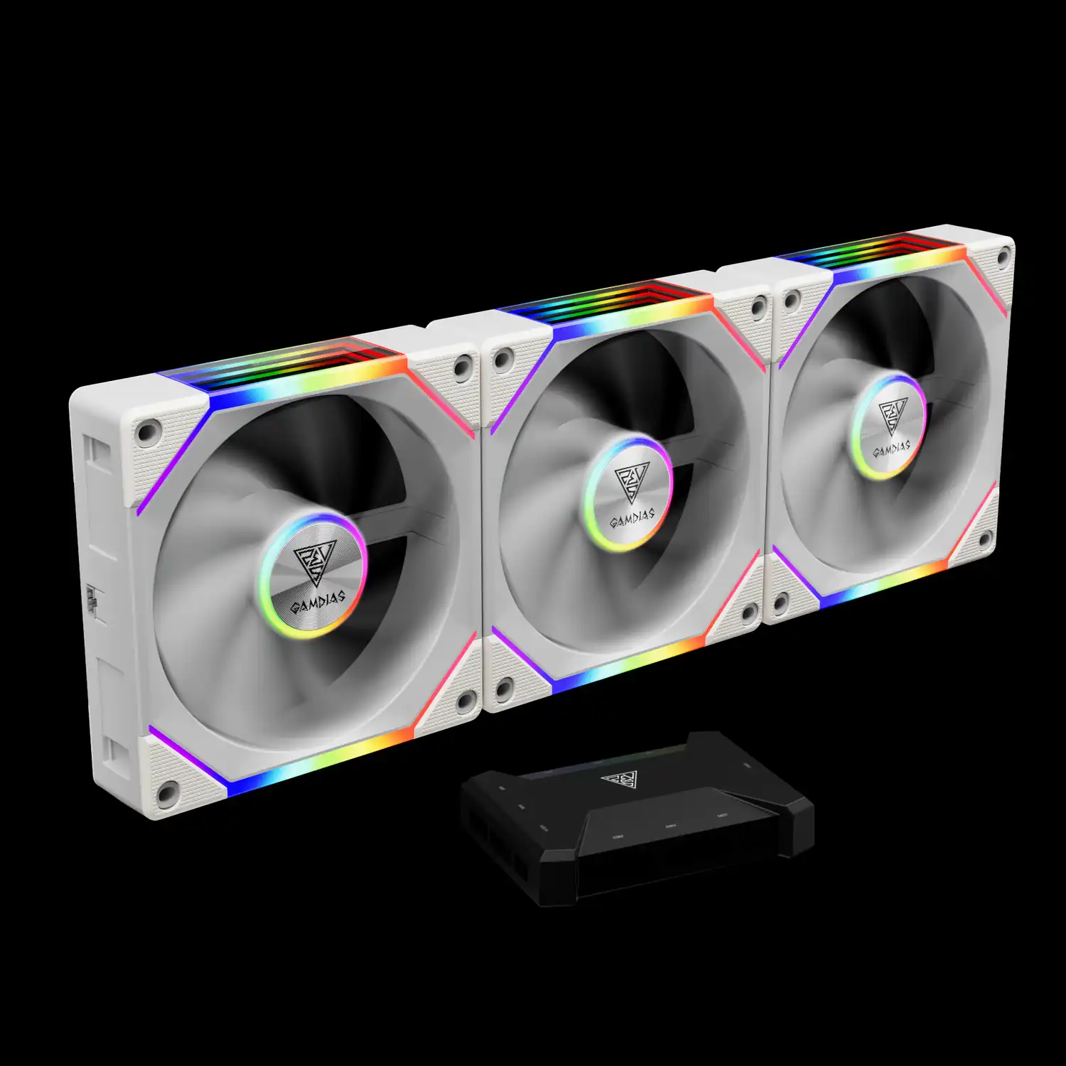 Kit 3 Fans Gamdias Aeolus P2-1203U Branco ARGB Controladora