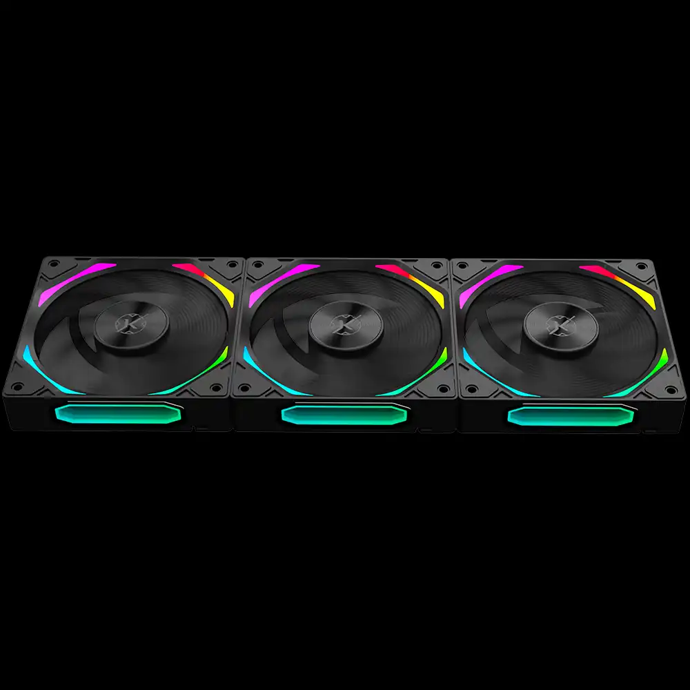 O grande destaque está nas laterais com efeito espelho infinito ARGB, que criam um visual moderno e profundo quando instaladas lado a lado. As hélices contam com guias de fluxo integradas, direcionando melhor o ar e aumentando a eficiência térmica.