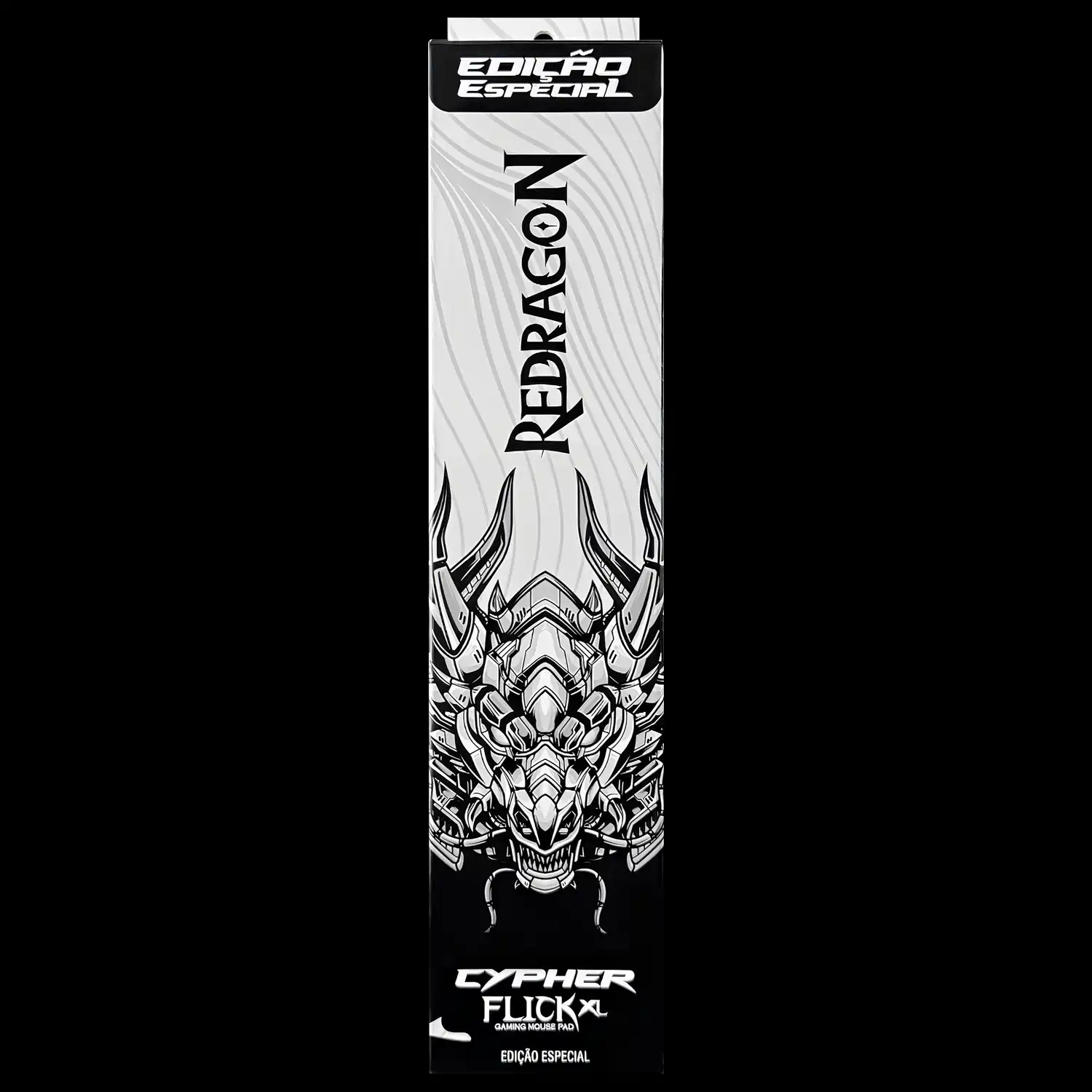 O visual minimalista da edição especial Cypher transforma o setup. A combinação de preto, branco e cinza com o Dragão Mech cria um estilo limpo, moderno e diferenciado, perfeito para quem quer um setup organizado e com identidade.
