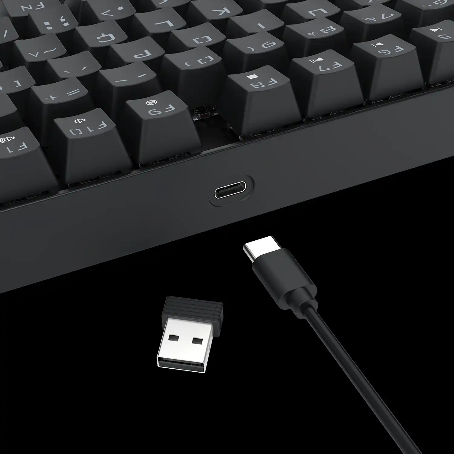 - Formato compacto TKL – Sem o teclado numérico, ocupa menos espaço na mesa e melhora a ergonomia.