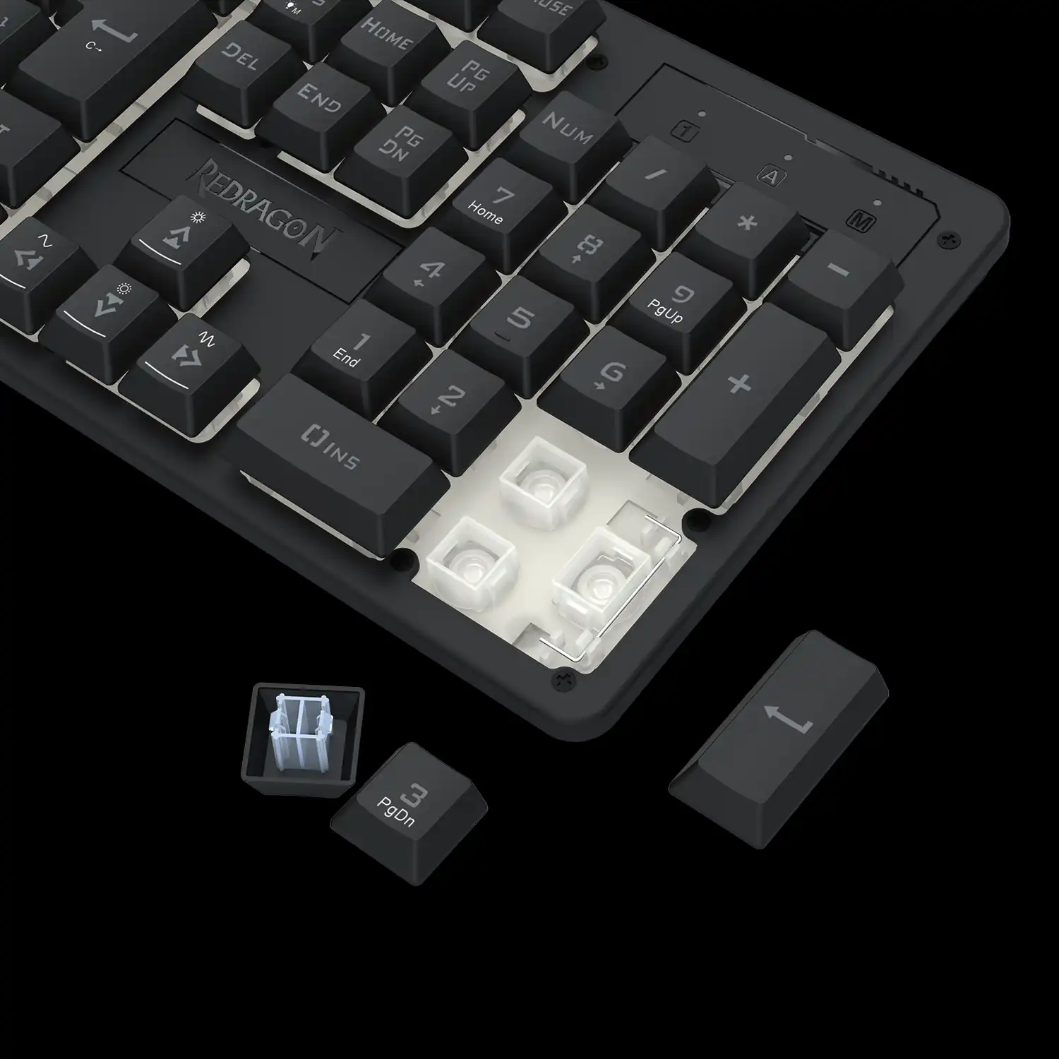 O Redragon Netherbane Pro K521RGB-KS combina tecnologia moderna, design robusto e conectividade avançada em um formato Full Size, ideal para quem precisa do teclado numérico sem abrir mão da performance nos games.